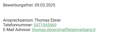 Zeigt dir an, wie du dich bewerben kannst oder musst. Es gibt Unternehmen, die nur Bewerbungen über ihre Homepage akzeptieren. Andere sind flexibler und bieten verschiedene Bewerbungsarten an. Außerdem findest du hier oft Informationen darüber, welche Unterlagen gefragt sind (Lebenslauf, Zeugnisse usw.) sowie die Bewerbungsfrist.