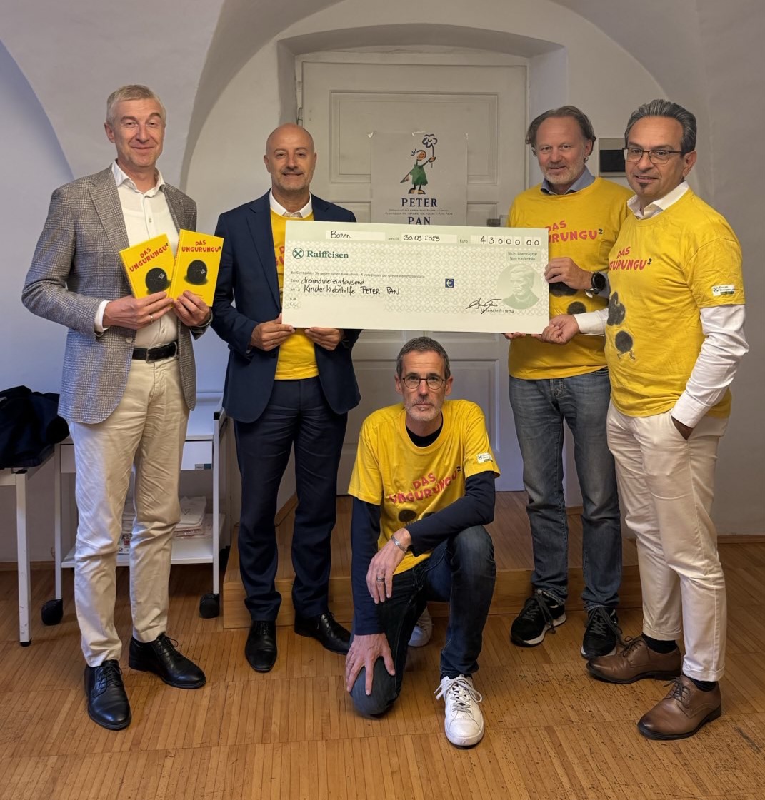 Nachdem der erste Teil des Kinderbuchs von Ivan Rech Daldosso bereits 87.000 Euro an Spenden für Peter Pan eingebracht hatte, konnten wir nun insgesamt 130.000 Euro für die Kinderkrebshilfe sammeln. Diese beeindruckende Unterstützung wurde möglich durch unseren Filialleiter und Kinderbuchautor Ivan Rech Daldosso und sein Buch "Ungurungu". Seine Tochter Maja hat wieder die Illustrationen beigesteuert.