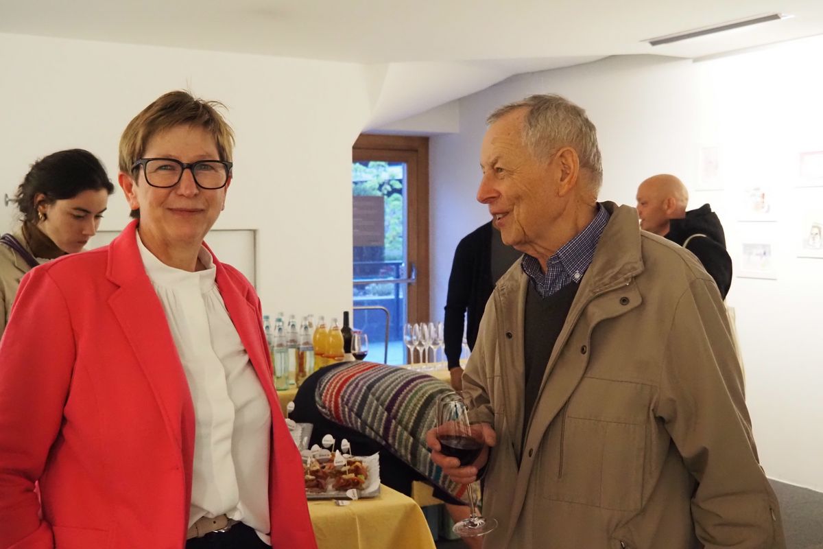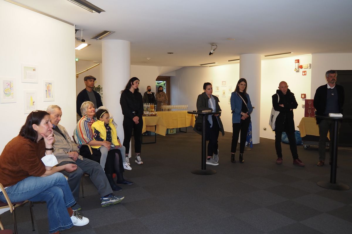 Am 5. Mai wurde die Ausstellung von Waltraud Ausserhofer, Verwaltungsrätin der Raiffeisenkasse Bruneck, eröffnet. Kuratorin Lisa Trockner erläuterte die Hintergründe der Zeichnungen: „Die in Hamburg lebende Veronica Moroder und die in Lajen ansässige Sarah Solderer haben in einer Zeit der digitalen Kommunikation ein zusehend in Vergessenheit geratenes Medium der Kunst, die Künstler*innenkorrespondenz, auf einfühlsame und persönliche Art und Weise wieder belebt und ins Jetzt übertragen“, erzählt sie. Skizzenhaft in Bildsprache - manchmal von wenigen Worten begleitet - hat jeweils eine der beiden jungen Künstlerinnen ihre Eindrücke, Erfahrungen, Sehnsüchte, Ängste, Vorsätze und Wünsche des täglichen Lebens auf einem A5-Papier festgehalten und auf dem Postweg verschickt. Die Empfängerin antwortete auf demselben Papier ebenfalls in lasierenden Farbauftrag. Durch dieses stetige Hin und Her entstand nach und nach eine Serie intimer Geschichten aus dem Alltag zweier junger Frauen. Ein visueller Briefwechsel zweier Künstler*innen, die es vermögen, räumlich getrennt und zeitversetzt miteinander zu arbeiten und dabei poetisch von den Banalitäten des Alltags einer ganz und gar nicht alltäglichen Zeit zu erzählen.