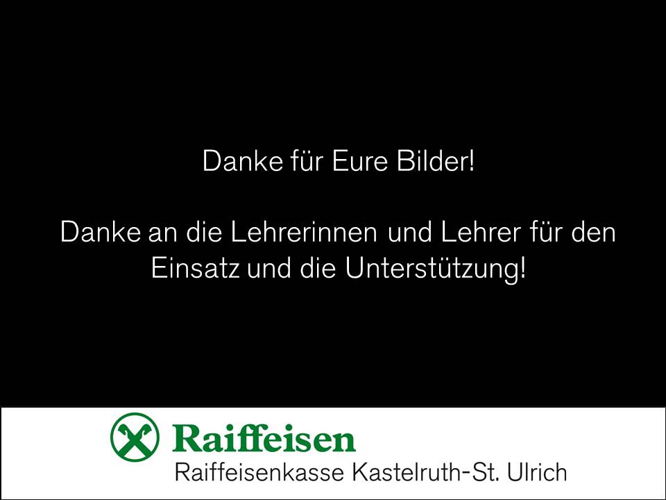 Wir danken allen Schülern und Schülerinnen für ihre großartige Teilnahme am Wettbewerb und ihre tollen Bilder. Ein großes Dankeschön geht auch an die Lehrpersonen, die die Kinder tatkräftig unterstützt haben.
