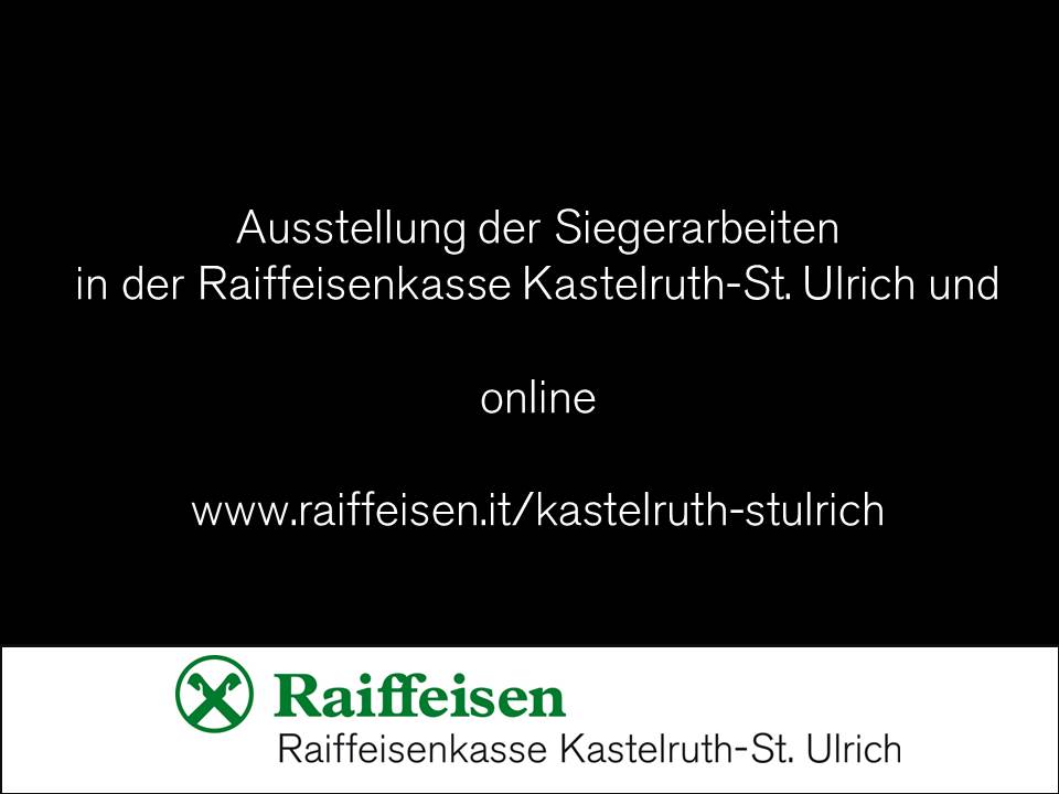 Die Siegerarbeiten sind im Hauptsitz der Raiffeisenkasse in Kastelruth ausgestellt und können gerne besichtigt werden.
