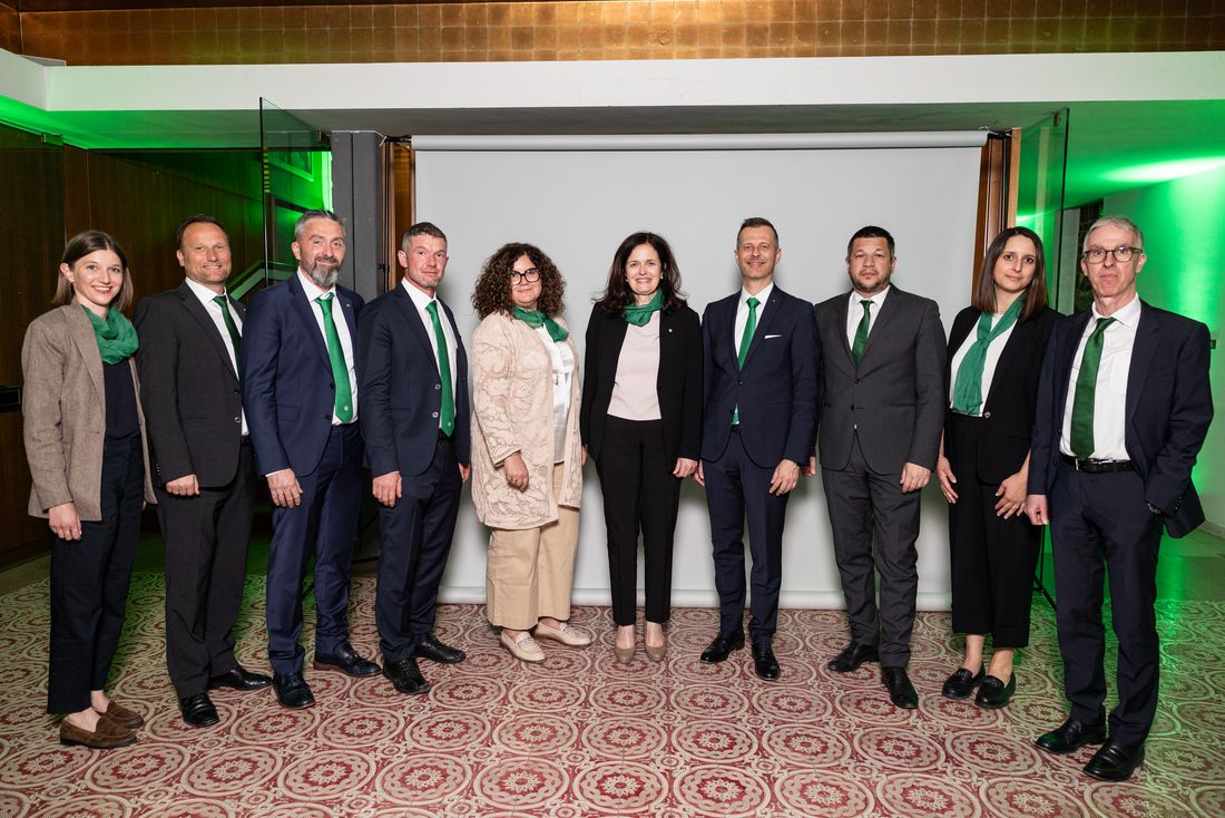 v.l. Dr. Anna Tribus, Ing. Patrik Turini, Florian Torggler, Martin Hillebrand, Renate Kaufmann, Obmannstellvertreterin Dr. Petra Weiss, Obmann Dott. Harald Werth, Dr. Helmut Sartori, Dr. Rebekka Gassebner, Aufsichtsratspräsident Dr. Johannes Alber