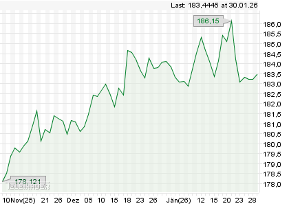 | Höchstkurs | 22.01. | 186.1500 | 19.12. | 184.6545 |