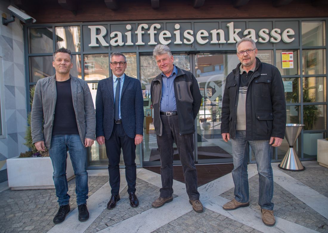 Die Vertreter des Männerchores Goldrain trafen sich kürzlich zu einem Gespräch mit dem neuen Geschäftsführer der Raiffeisenkasse Latsch Karl Heinz Tscholl.