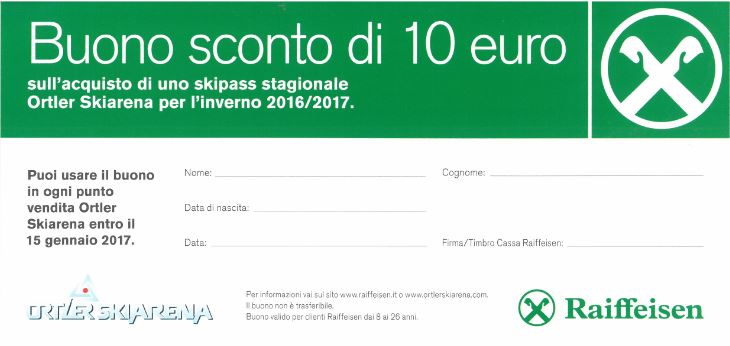 Alle jungen Raiffeisenkunden unter 26 Jahren dürfen sich freuen. Wieso? Deine Raika schenkt schenkt dir einen 10 Euro Gutschein für den Kauf der Ortler Skiarena. Komm zu uns und hol dir den Rabatt.