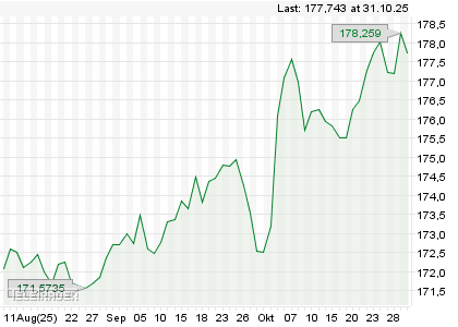 | Höchstkurs | 30.10. | 178.2590 | 10.07. | 175.1190 |