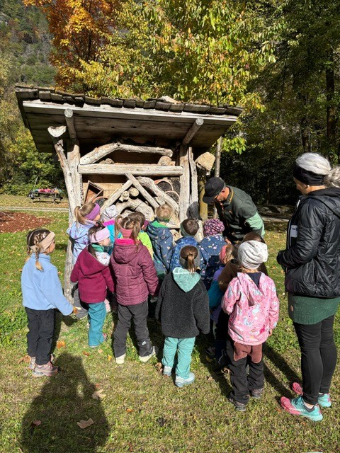 Im Spätsommer haben die Kinder noch das Insektenhotel in der „Schmelz“ in Prad besichtigt.