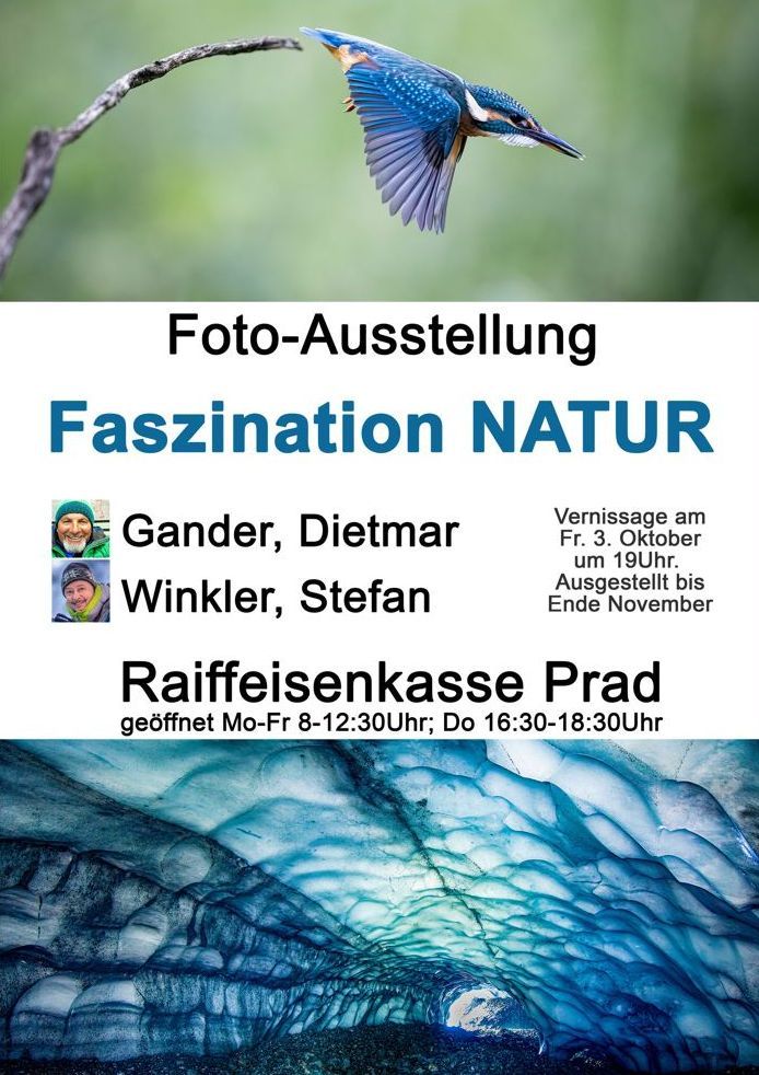 Am Freitag, 03. Oktober 2025, wurde die Vernissage der Foto-Ausstellung "Faszination NATUR" von Dietmar Gander und Stefan Winkler in der Raiffeisenkasse am Hauptsitz in Prad am Stilfserjoch eröffnet!