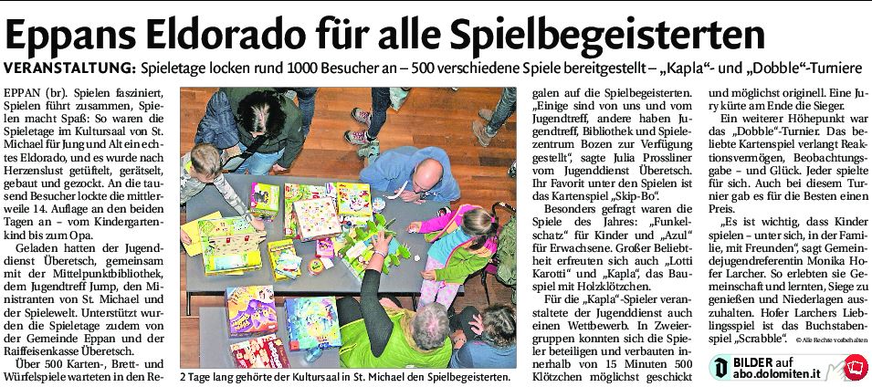 - Dolomiten - 12.12.2018 - "Eppans Eldorado für alle Spielbegeisterten"