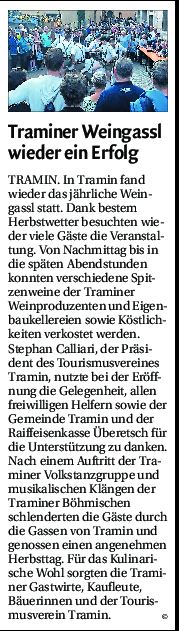 - Dolomiten - 31.10.2018 - "Traminer Weingassl wieder ein Erfolg"