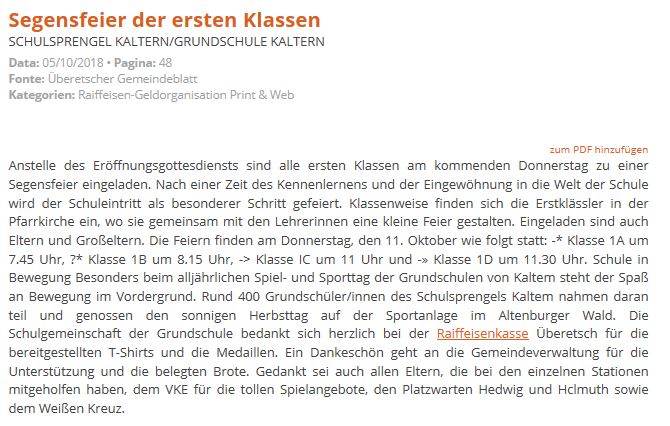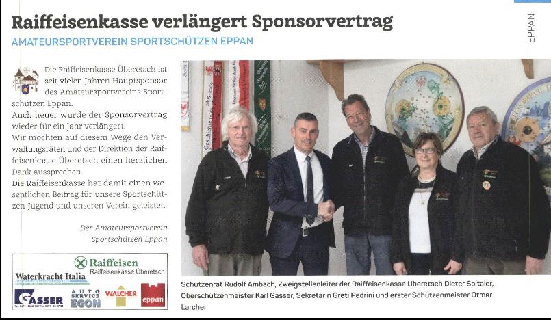 - Überetscher Gemeindeblatt - 11.05.2018 - "Raiffeisenkasse verlängert Sponsorvertrag"