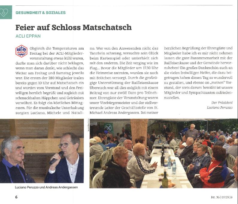 - Überetscher Gemeindeblatt - 07.09.2018 - "Feier auf Schloss Matschatsch"