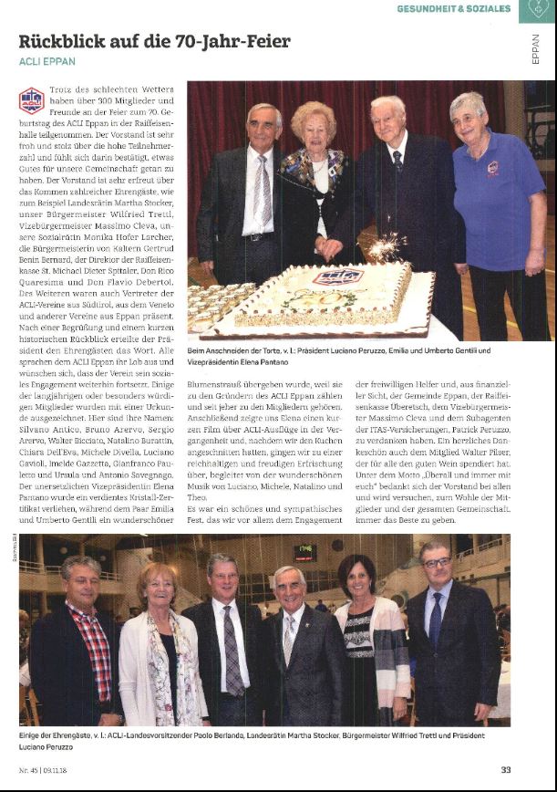 - Überetscher Gemeindeblatt - 09.11.2018 - "Rückblick auf die 70-Jahr-Feier"