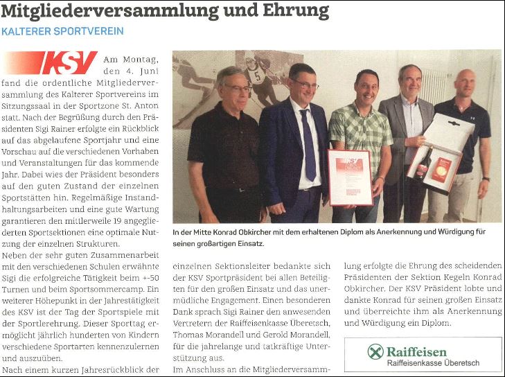 - Überetscher Gemeindeblatt - 22.06.2018 - "Mitgliederversammlung und Ehrung"