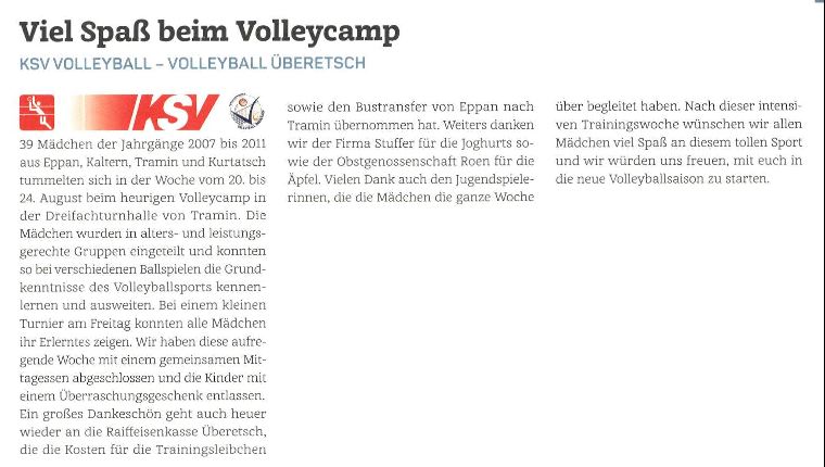 - Überetscher Gemeindeblatt - 31.08.2018 - "Viel Spaß beim Volleycamp"