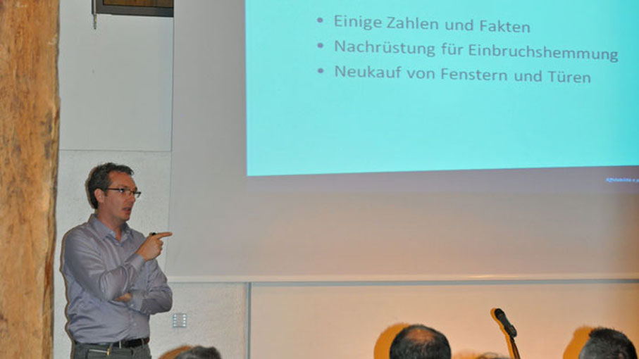 Im Anschluss erklärte Mirko Haller, Elektrotechnikmeister und Vertreter der E-Marke Südtirol, die verschiedenen Möglichkeiten elektronischer Sicherungen wie Alarmanlagen, Überwachungsanlagen und intelligente Gebäudetechnik.