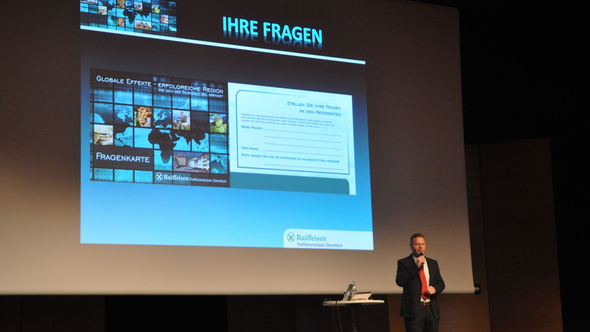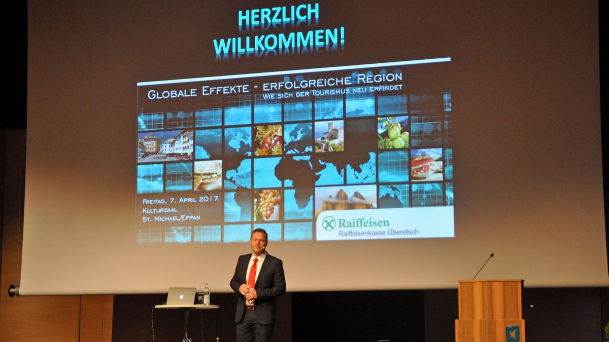Nach der Eröffnung des Abends durch den Obmann der Raiffeisenkasse Überetsch, Philipp Oberrauch, und den Grußworten des Präsidenten des Tourismusvereins Eppan/Raiffeisen, Philipp Waldthaler, waren alle auf die Ausführungen des Geschäftsführers des Zukunftsinstituts Deutschland und Österreich gespannt. Fragen wie „Welche neuen Technologien beeinflussen den Tourismus?“ oder „Muss sich Südtirol in Zukunft sorgen um sein Geschäftsmodell machen?“ brannten den Zuhörern förmlich unter den Nägeln.