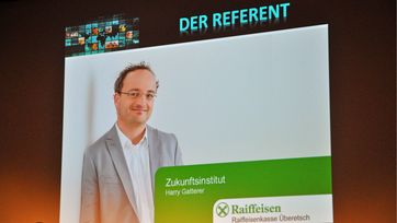 An die 250 Zuhörer waren am Freitagabend gespannt in den Kultursaal nach St. Michael/Eppan gekommen, um den renommierten Trendforscher Harry Gatterer live zu erleben. Unter den Gästen befanden sich dabei auch eine Vielzahl an Experten der Südtiroler Tourismusbranche, sowie viele Interessierte Hoteliers, Gastronomen und Mitglieder der Raiffeisenkasse Überetsch.