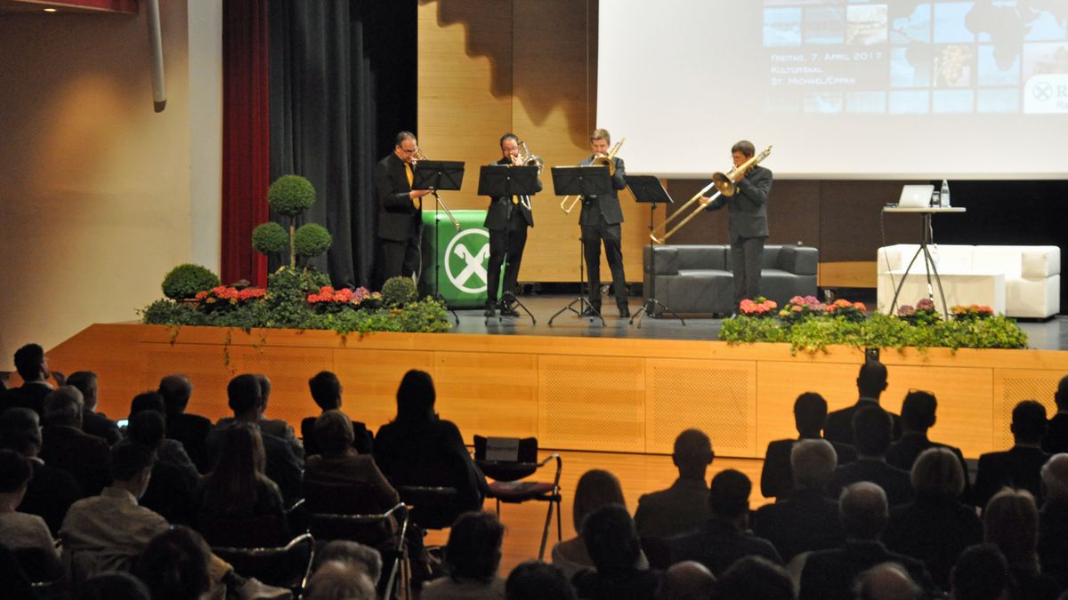 Passende musikalische Einlagen rund ums Thema Zukunft bot das Posaunenquartett „SonOro“ mit Hans Finatzer an der Spitze. Günther Heidegger begleitete als Moderator das Publikum gewohnt charmant durch den Abend, welcher mit vorzüglichen Südtiroler Weinen und kleinen Leckerbissen abgerundet wurde. Hierbei mischte sich auch Harry Gatterer unter die Gäste und es wurde noch ausgiebig gefachsimpelt.
