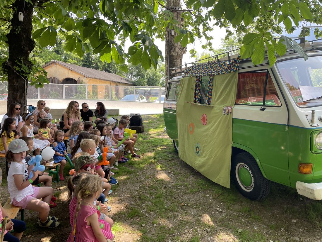 Der Spielbus "Emil" der Spielwelt Eppan war ebenfalls vor Ort, von wo aus das Kasperle mehrmals auftrat und die Anwesenden mit seinen Abenteuern zum Lachen brachte. Zudem konnten die Kinder im Laufe des Nachmittags im Filmtreff Kaltern zwei Kinovorführungen des Films "Meine Chaosfee und ich" besuchen.