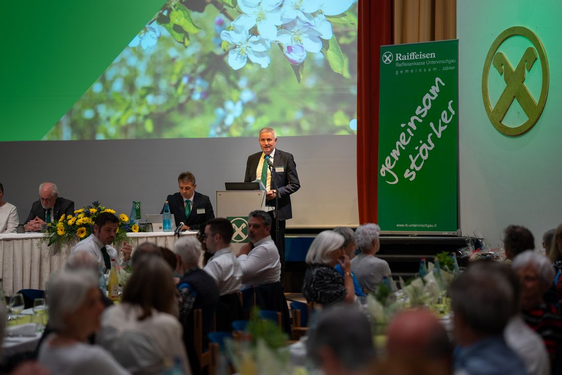 Die ordentliche Vollversammlung der Raiffeisenkasse Untervinschgau fand am 30. April 2025 im Raiffeisensaal des Bürger- und Rathauses in Naturns statt. Bei der Vollversammlung wurde eine Rekordbeteiligung verzeichnet, da erstmals bei einer Vollversammlung der jungen Raiffeisenkasse Untervinschgau ohne Newahlen über 300 Mitglieder aus den Gemeinden Naturns, Plaus, Kastelbell Tschars und Schnals anwesend waren. Dies zeugt vom hohen Zuspruch der Mitglieder und dem Interesse an „ihrer“ Raiffeisenkasse. Auf der Tagesordnung stand der Abschluss des Geschäftsjahres 2024, die Festlegung der Höchstkreditgrenzen, sowie die Ehrungen der langjährigen Mitglieder.