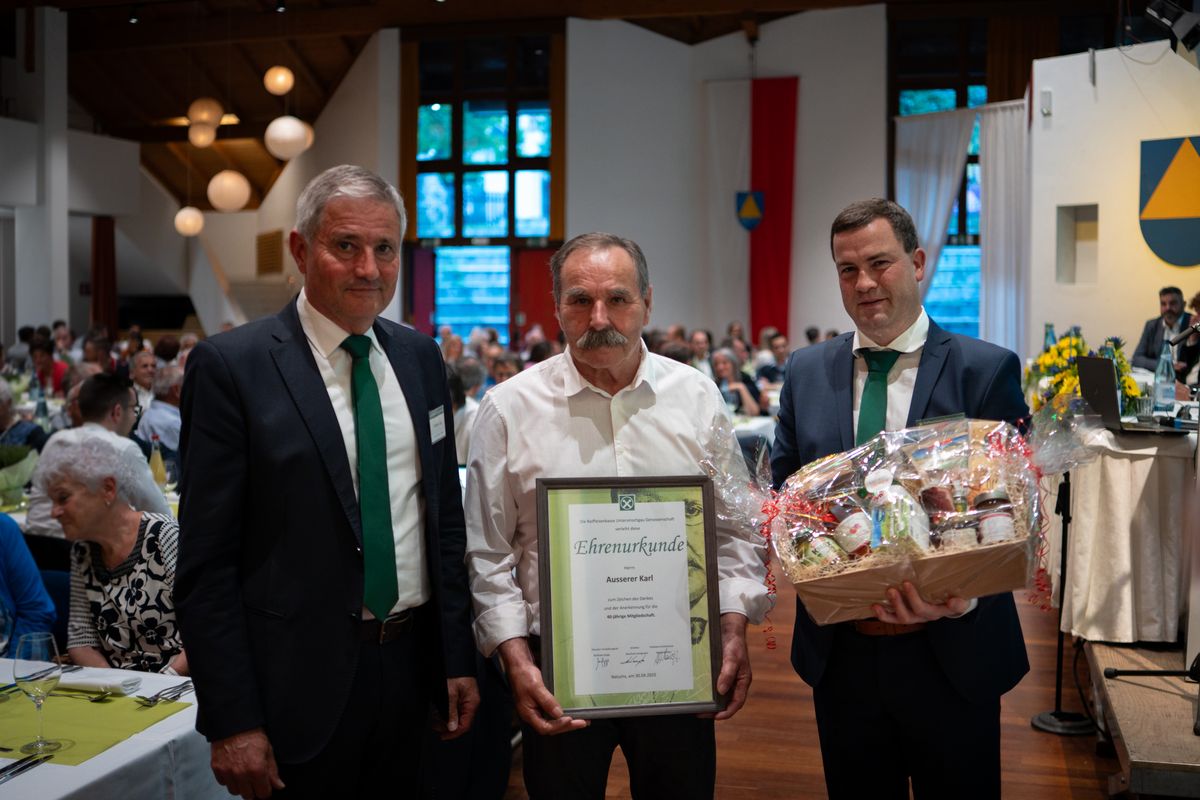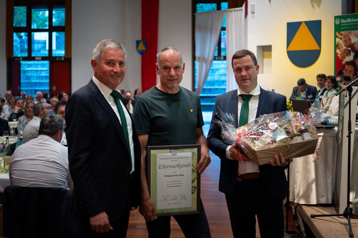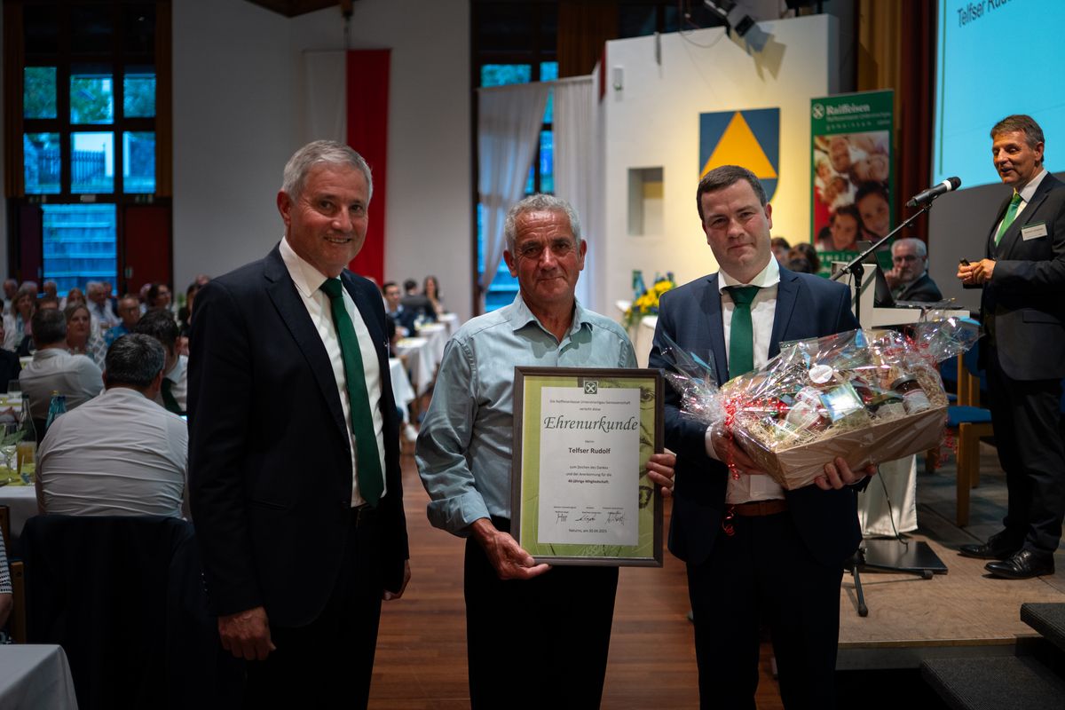 Nach dem formellen Teil der ordentlichen Vollversammlung, wurden die Mitglieder mit über 40 Jahren Mitgliedschaft geehrt. Obmann Wolfram Gapp betonte: "Die genossenschaftlichen Prinzipien der Raiffeisenkasse Untervinschgau entsprechen genau dem aktuellen Zeitgeist. Mitbestimmung, Nähe, Verlässlichkeit, Vertrauen und Nachhaltigkeit stehen hoch im Kurs - und das sind Werte, die wir bei der Raiffeisenkasse Untervinschgau leben. Unser Kernauftrag ist seit jeher die Mitglieder und Kunden in unserem Einzugsgebiet mit finanziellen Dienstleitungen und Produkten zu versorgen. Zudem wird laut Kernauftrag die gesamte Gemeinschaft im Marktgebiet in ihrer Entwicklung mittels Spenden und Sponsorings unterstützt. Als lokale Genossenschaftsbank sind unsere Ziele langfristig ausgerichtet und wir legen großen Wert auf nachhaltiges und stabiles Wirtschaften."
