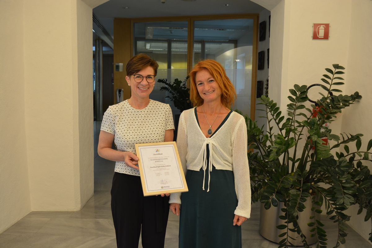 Vertreter des Ökoinstitutes haben Mitte Juli dem Verwaltungsrat der Raiffeisenkasse Wipptal das Zertifikat für den Nachhaltigkeitsbericht 2021 übergeben.