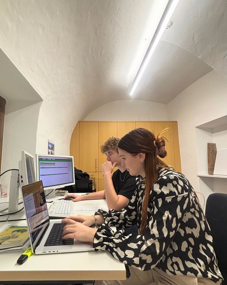 Leonie und Hannes besuchen die 4. Klasse der WFO in Sterzing und absolvierten im Januar 2025 ein Schulpraktikum in der Raiffeisenkasse Wipptal. In diesen zwei Wochen erhielten sie einen kleinen Einblick in die Arbeitswelt der Bank.