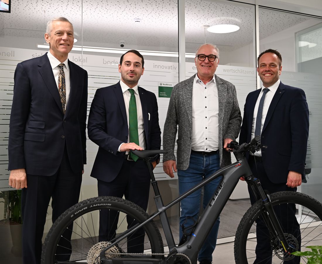 Im Rahmen des Jubiläums „40 Jahre Geschäftsstelle Frangart“ wurde am Mittwoch der Hauptpreis des großen Gewinnspiels feierlich an den glücklichen Gewinner Andreas Folie überreicht. Als Hauptgewinn erwartete ihn ein hochwertiges E‑Bike der Marke CUBE – Modell Reaction Hybrid Pro 600, das sowohl für sportliche Touren als auch für den täglichen Einsatz bestens geeignet ist.