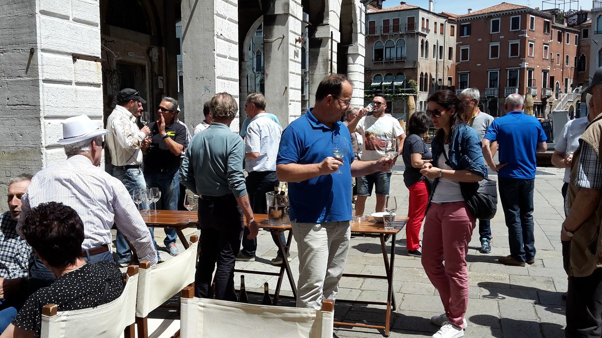 Nach der Ankunft am Markusplatz stand eine Stadtführung auf dem Programm, die mit einem venezianischen Aperitif und dem Spaziergang zur Rialtobrücke abgerundet wurde.