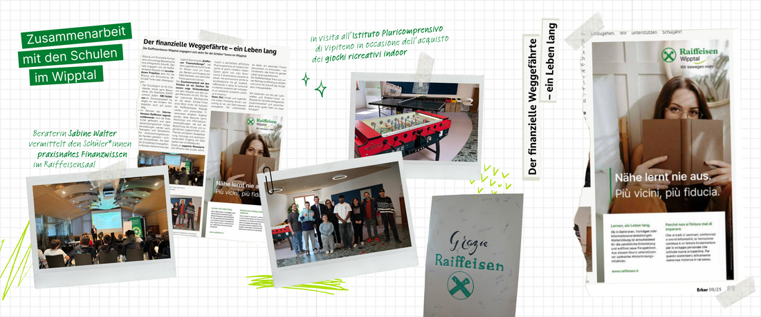 Die Zusammenarbeit mit den Schulen ist ein Zeichen für unsere enge Verbundenheit mit dem Wipptal und den jungen Menschen vor Ort. Wir bieten spannende Bankbesuche an, bei denen Schüler*innen einen Blick hinter die Kulissen der Raiffeisenkasse Wipptal werfen und praxisnahes Finanzwissen erhalten. Ergänzt werden diese Besuche durch Workshops und Informationsveranstaltungen, die auf die Bedürfnisse der Kinder und Jugendlichen zugeschnitten sind. Themen wie Sparen, Budgetplanung, Vorsorge und verantwortungsvoller Umgang mit Geld stehen hier im Mittelpunkt.