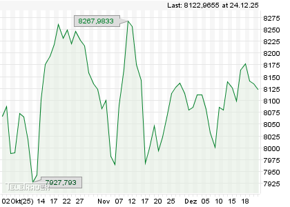 | 8.122,97 | -12,08 | -0,15 | 8.135,05 | 8.125,99 | 8.133,04 | 8.122,97 |