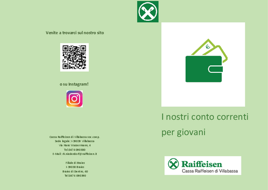Messaggio pubblicitario con finalità promozionale. Le condizioni contrattuali sono riportate nei fogli informativi presso la Cassa Raiffeisen e sotto la voce “Trasparenza”.